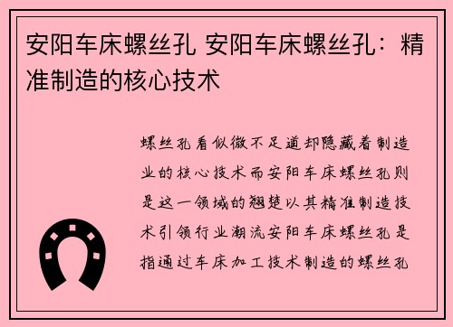 安阳车床螺丝孔 安阳车床螺丝孔:精准制造的核心技术