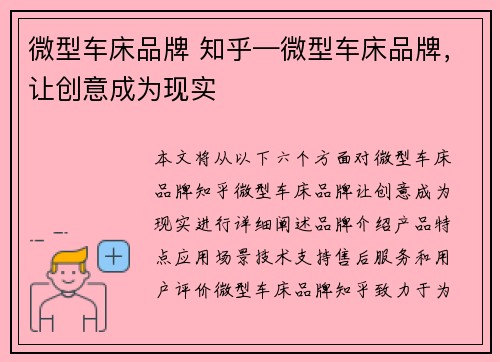 微型车床品牌 知乎—微型车床品牌,让创意成为现实
