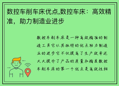 数控车削车床优点,数控车床:高效精准,助力制造业进步